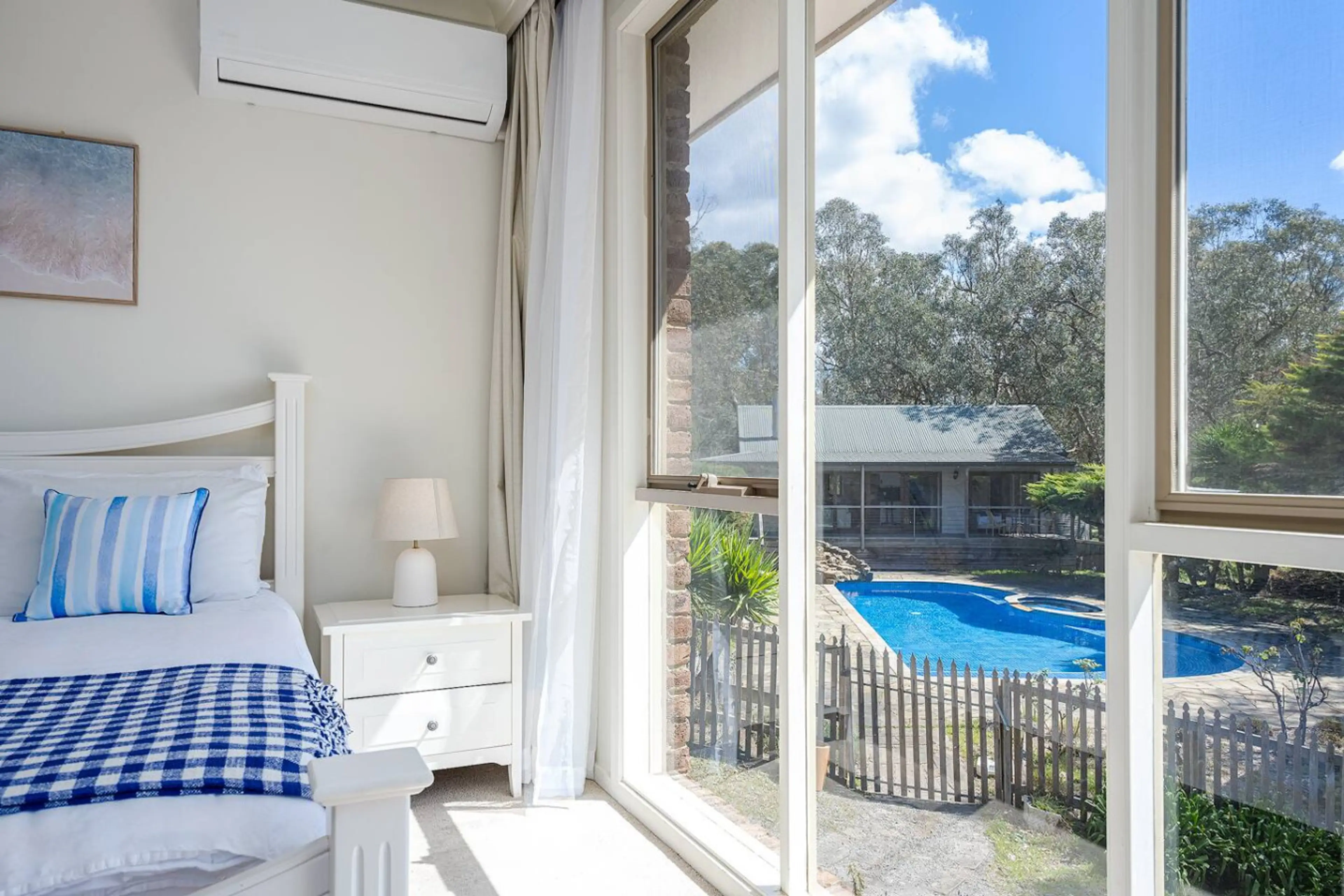 Stay together yet enjoy privacy across three self-contained cottages, each with its own entrance, kitchen, and outdoor space. Relax by the private pool, wander through open paddocks and bushland trails, and soak up with panoramic treetop and valley views. Perfect for families, groups, or couples, th...